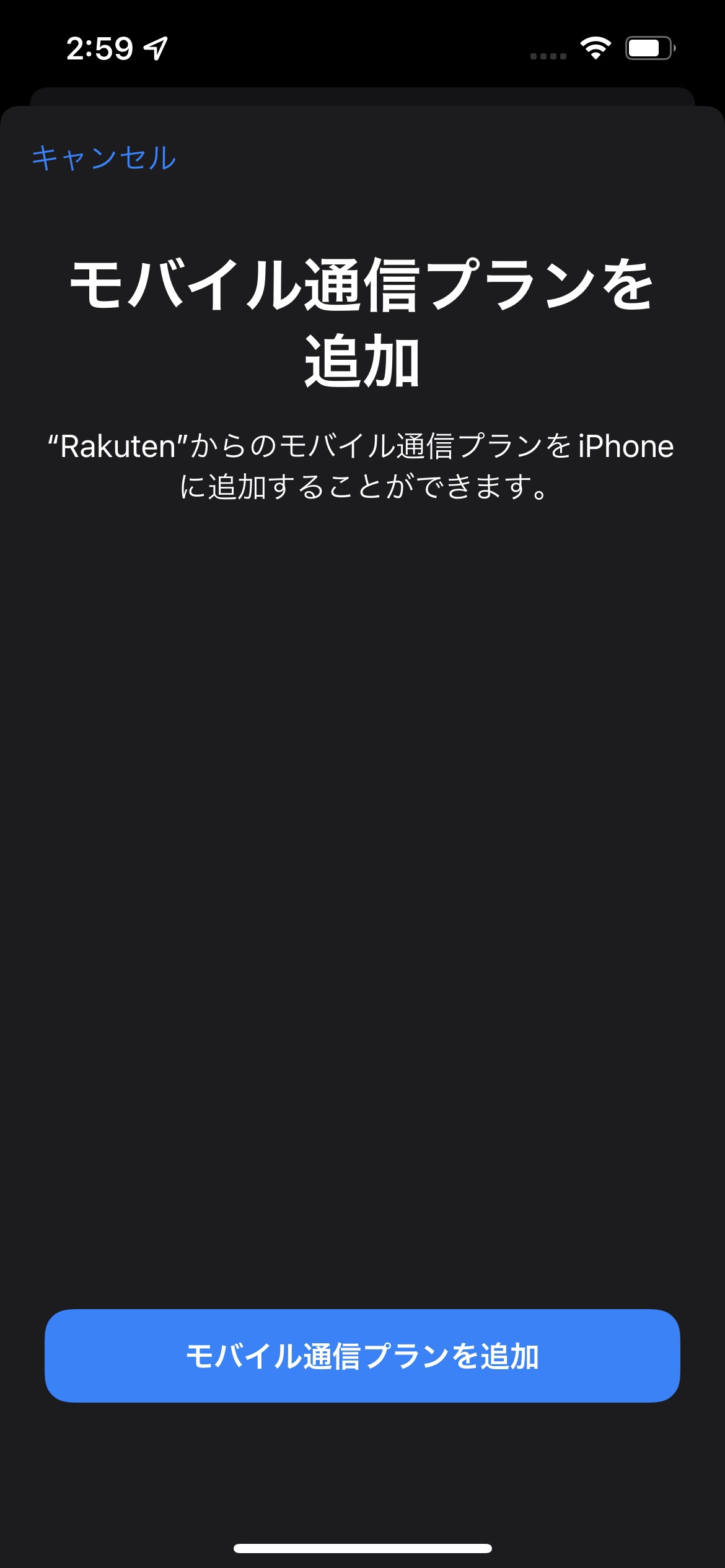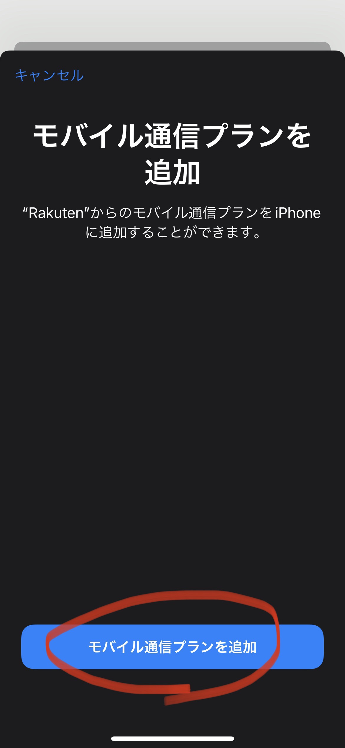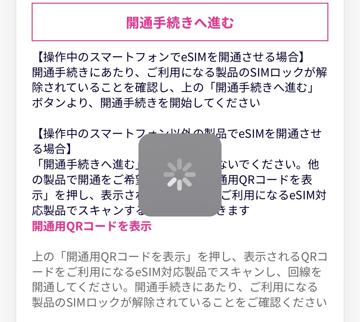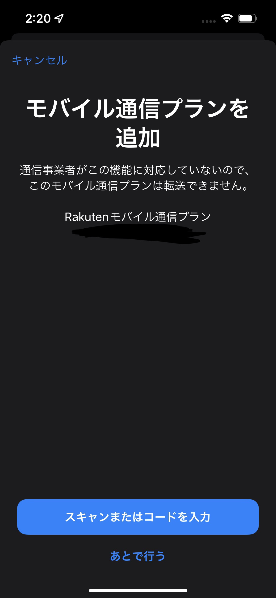 QRコードを読み込んでからしばらくかかるみたい。これ待っているだけではダメみたいで楽天モバイル側でも操作が必要でした。
