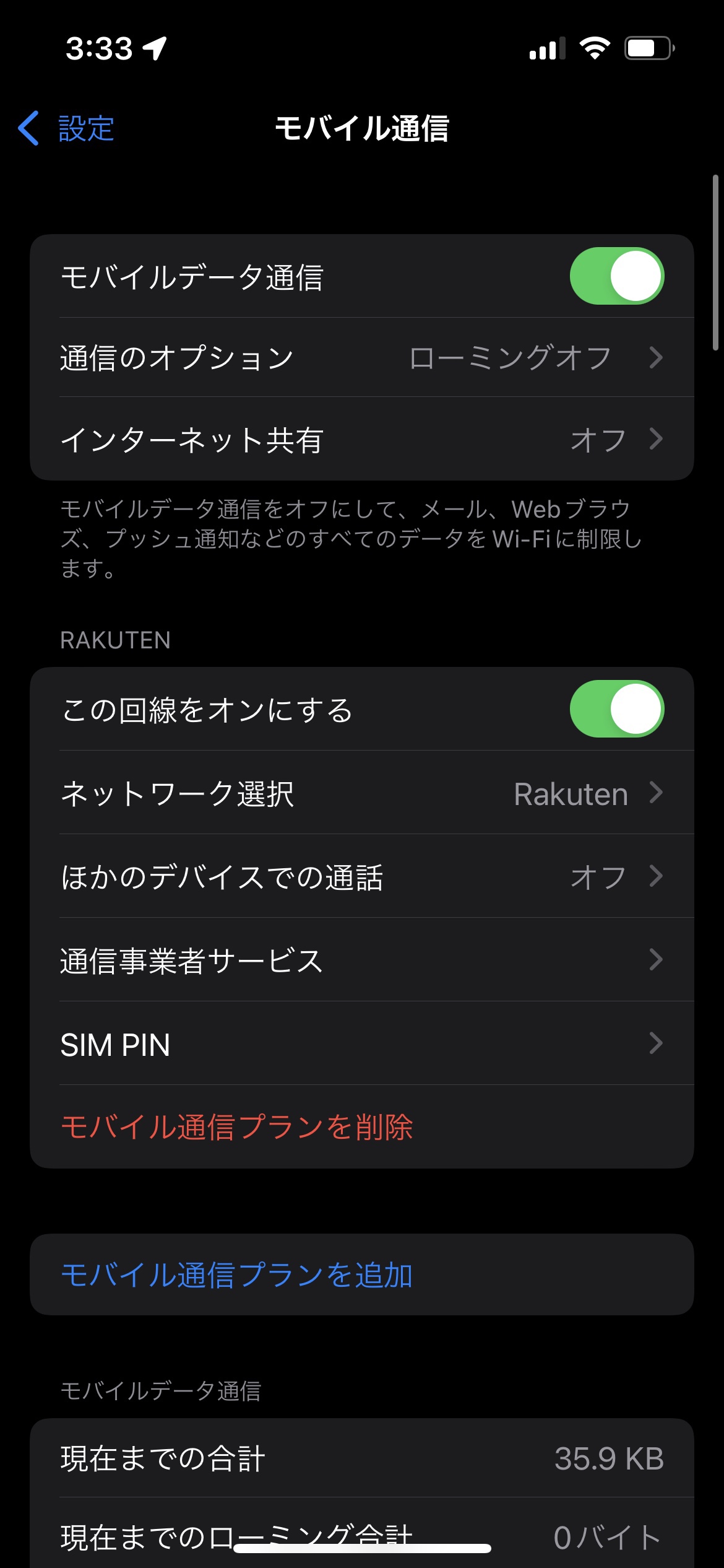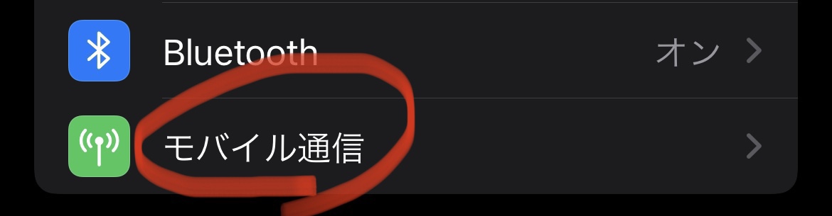 モバイル通信の項目を再度見てみるといつもいつも通りの表示状態になっている。
