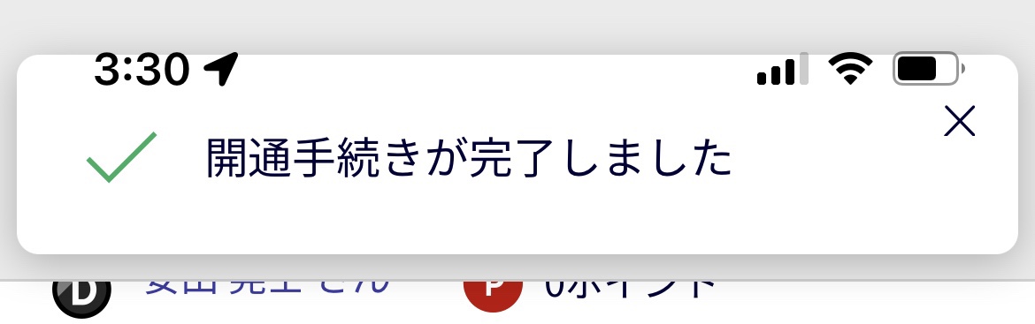 開通したらiPhoneにメッセージが表示されて少しびっくりする。