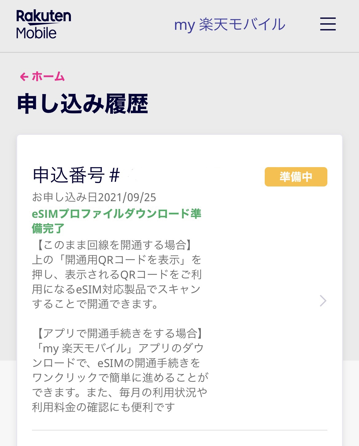 最終的にはmy楽天モバイルのアプリから開通の手順が必要なようです。