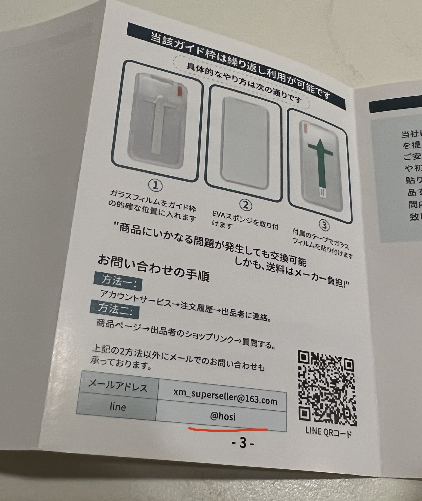 説明書に書かれてたLINEの連絡先が同じでした。