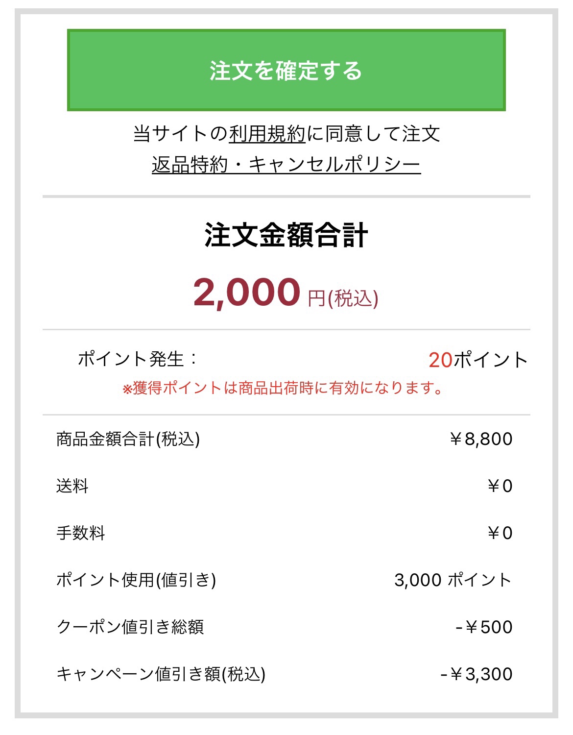 枕を買った時に10倍ポイントキャンペーンをやっていて3000ポイント貯まっていたので使用。結果的にスリープコインが2000円で購入出来ました。