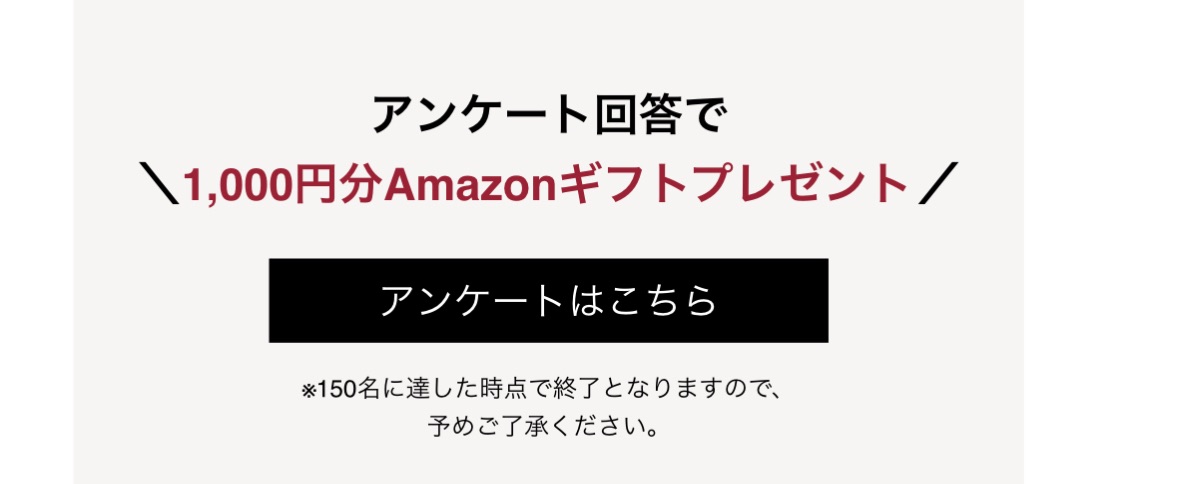 アンケートに答えるとAmazonギフト券1000円分もらえるようです。