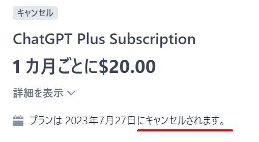 ChatGPT Plusのサブスクを解約したとしても解約日までは使用できます。 一カ月単位の契約なので次回サブスクの更新日までは使用できます。 解約方法 1. 「三点リーダー」から"My plan"選択 2. "Manage my subscription" を選択 3. サブスクの契約確認画面... -