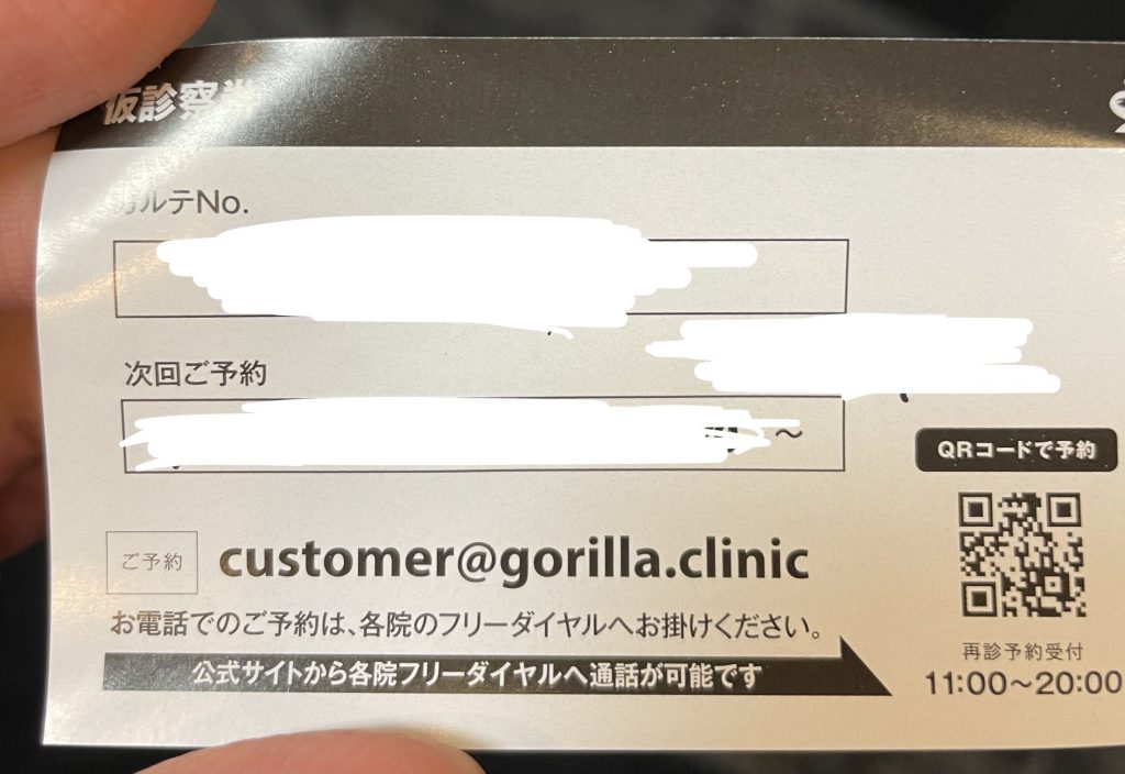 【ゴリラクリニック】診察券を忘れた場合 身分証でOK