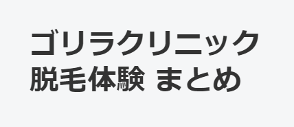 ゴリラクリニックでの脱毛体験のまとめページです。 脱毛した部分は「髭」「体全身の上半身・下半身・エチケット部位(股間・VIO・デリケートゾーン)」「耳毛と鼻毛」もです。 初めてゴリラクリニックに行ってカウンセリングを受けた時の記事はこちら。 ... -