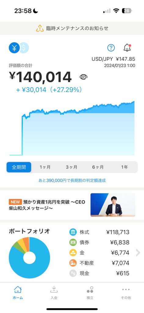 AI投資であるウェルスナビ(WealthNavi)から全額出金したのでこれまでの実績とオルカンとの比較の備忘録。 元々ウェルスナビが手数料が圧倒的に高いのは知っていたのですが、実際に運用したらどうなのか、AIはどういった運用を行うの、が気になったのでちょ... -