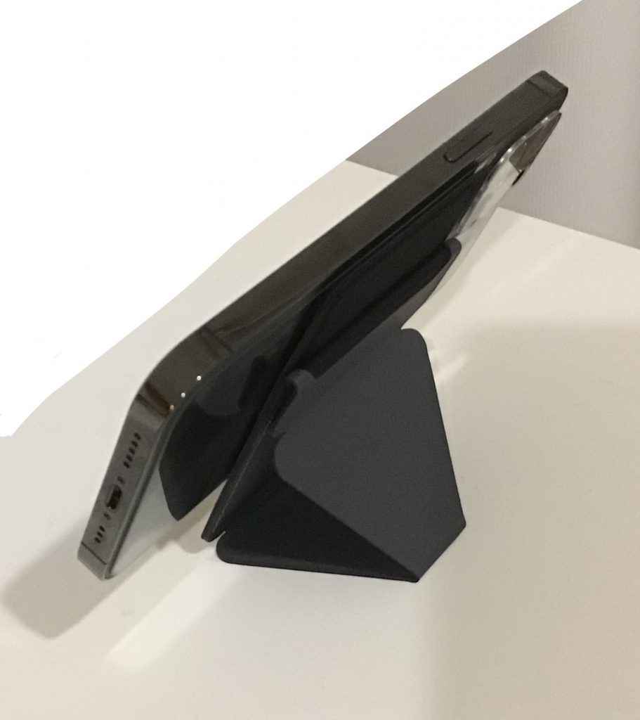 iPhone12pro使用。背面に保護シート貼ってる状態です。ケースは使って無いです。 スマホリング的に使おうと思うと少し心許ない。スタンドとしては優秀。 持ちながら片手で後ろの開く部分を開こうとすると横にスライドして外れる。 寝っ転がりながら逆さま...