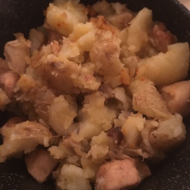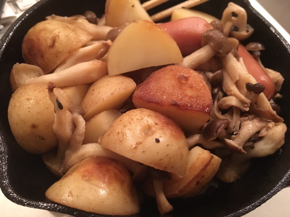 鶏肉としめじとじゃがいも。肉じゃがみたいになった。なんかイメージと違った・・・。