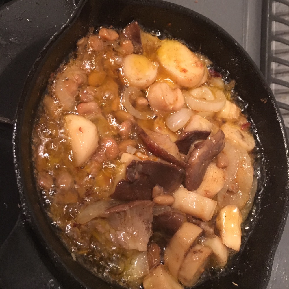 玉ねぎとエリンギと納豆!のアヒージョ。