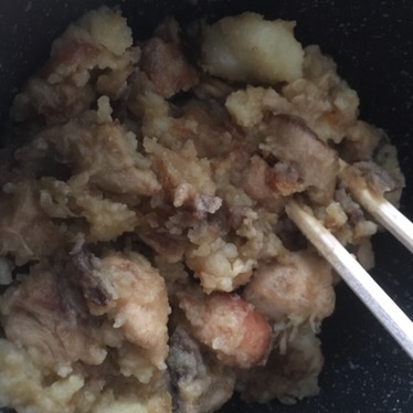 鶏肉としめじとじゃがいも。肉じゃがみたいになった。なんかイメージと違った・・・。