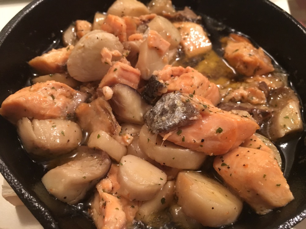 最初はちゃんとアヒージョ作ってたんですけど、そのうちオリーブオイル多めに入れて煮込んでるだけになりました。