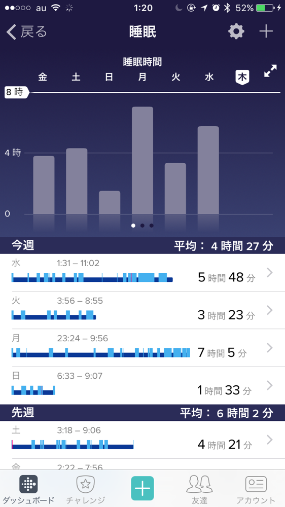 他のデバイスだと睡眠時間を計るときに睡眠モードに切り替えないとダメなものも多いです。