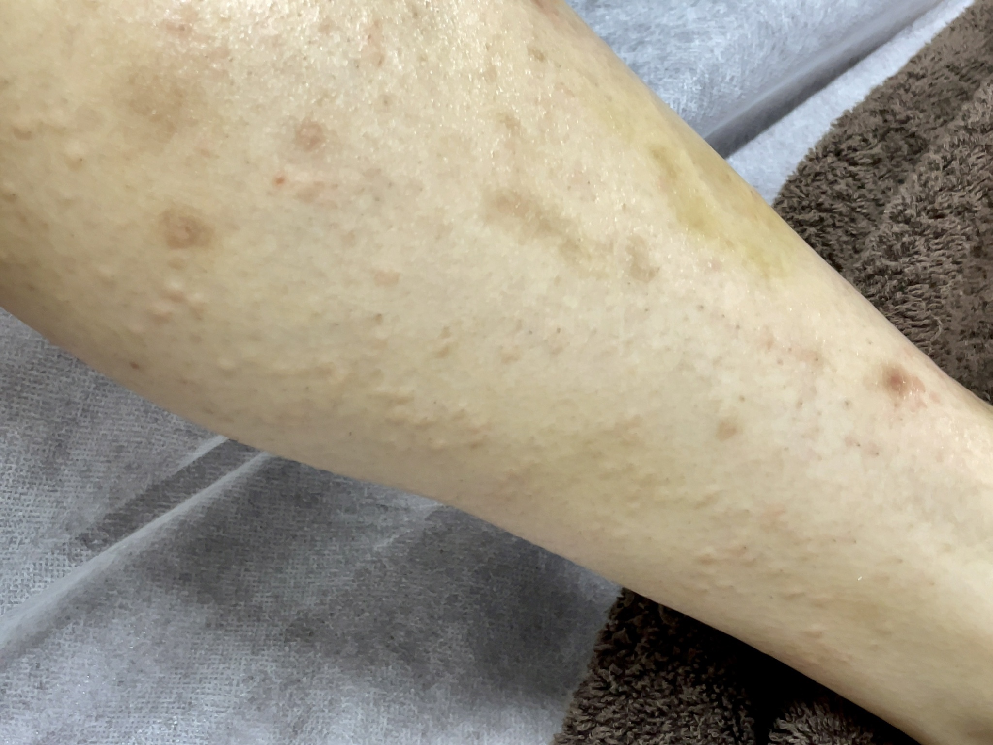 膝の辺りは赤みが出てきた。さらに翌日には大体治ってた。