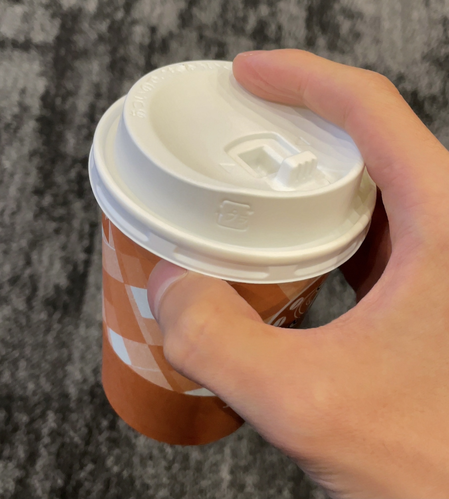 自販機のその物の横の側面のとこに紙コップの蓋がある。スタバとかのコンビニコーヒーのプラスチックの蓋。