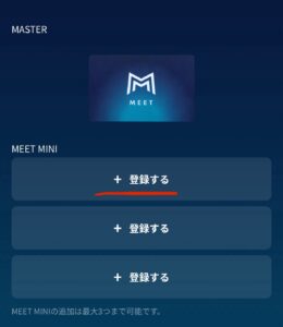 まず行うことは下部の「MEETの追加・確認」ボタンをタップ