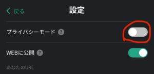 右下の歯車マークをタップからプライバシーモードをONにする。