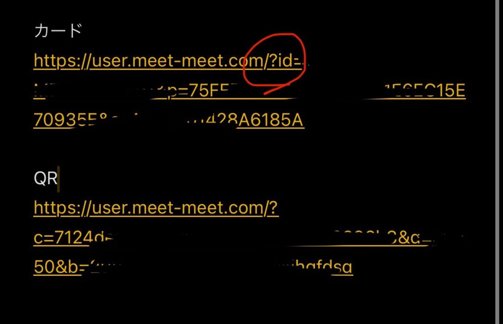 カード型のURLの方にはidなる部分があるのでこれが識別コードのような気がする。QRコードの方にはなかった。