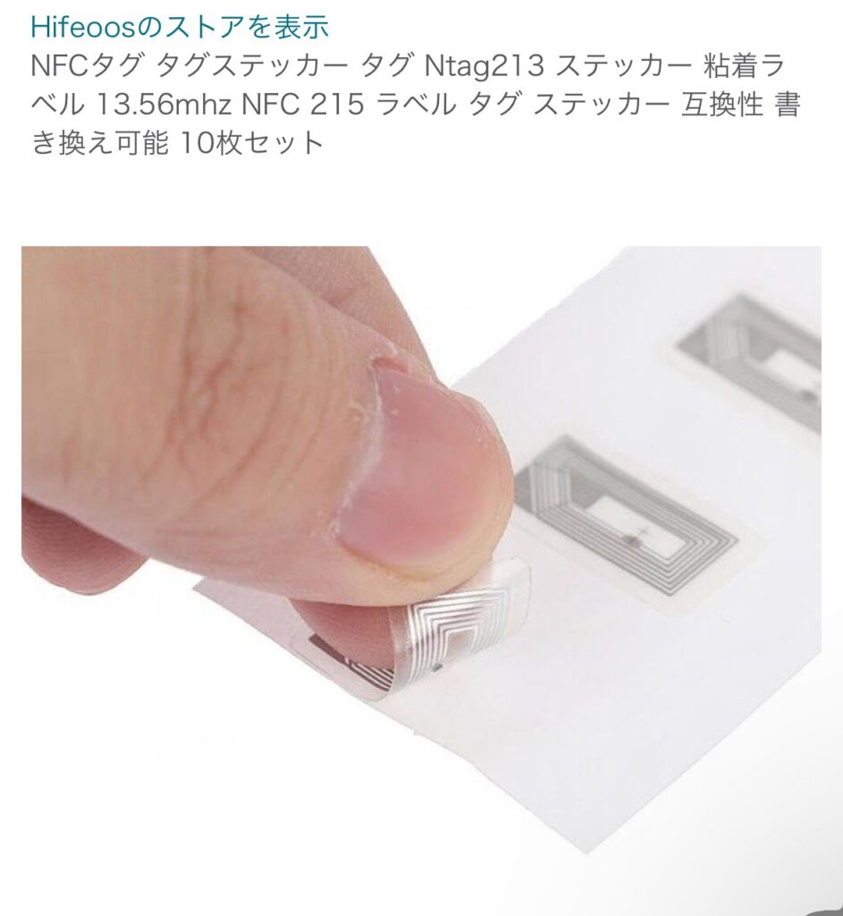 まずAmazonでNFCタグ(ステッカー)を購入。私が購入したのは10枚で500円いかないくらい。枚数少なくて安いの物や、30〜100枚くらいの単価が安くなるコスパがよい商品もある。