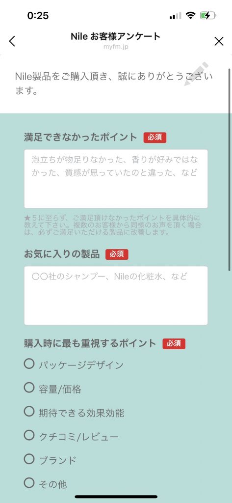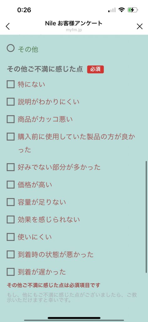 3. 直接テキストを入力しなけばならないアンケートもあります。満足できなかったポイントやお気に入り商品をを記入する必要がある。
