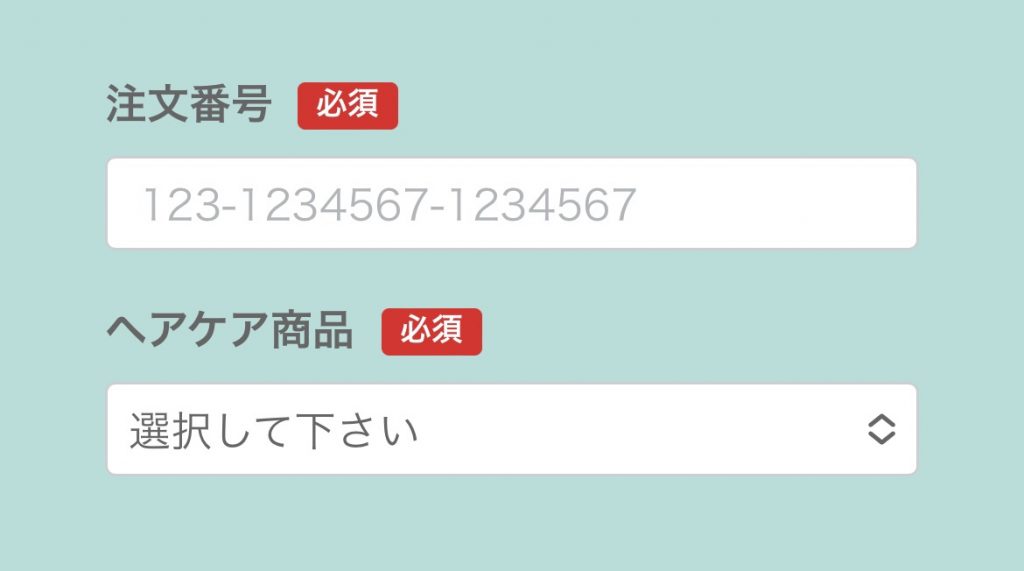 5. アンケート自体は終了。注文番号と購入商品を入力。