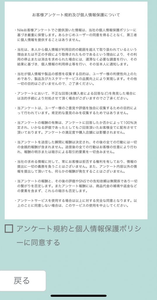 しかしNileは以前にも購入したことがあって、商品自体も気に入っていたので回答してみた。