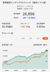 2020年8月28日に「世界経済インデックスファンド(株式シフト型)」に投資して2024年12月1日現在、約4年(4年と2ヶ月程度)と経過しました。