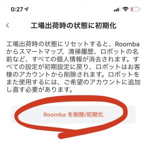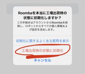 返却前にルンバにデータ残らないように初期化しておきましょう。