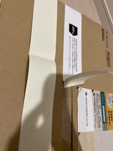テープで封をする。四つ折りされているところが丁度ダンボールの角にあるようなので折り目に折り目と角を合わせて貼っていく。