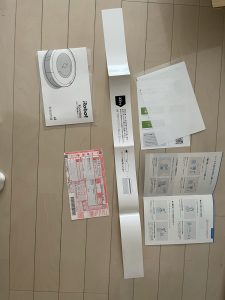 クリアファイルに入ってた説明書とか返信用の伝票。ネットから申し込んだので使わなかったけど。