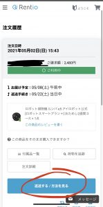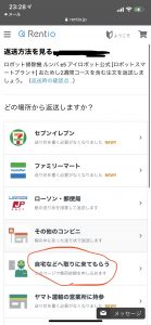 返却はレンティオHPの履歴から集荷やコンビニの持ち込み手続き出来る。住所書いたり入力しなくてよくて楽。