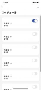 アプリの少し下にあるスケジュールってとこから何曜日の何時から開始するか設定できる。とりあえず全部の曜日朝8時からに設定。うるさいから目覚まし代わりになった。