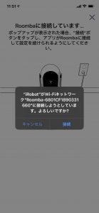 アプリ側がルンバに接続しようとする。Wi-Fiに〜って出ますが多分家のWi-Fiじゃなくてルンバが出してる電波に接続する感じ。