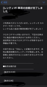 レンティオのサイトからだと簡単に申し込みできる。自宅に集荷を申し込んだ。その他コンビニから発送とかもできる。配送先を書いたりはしなくて良さそう。